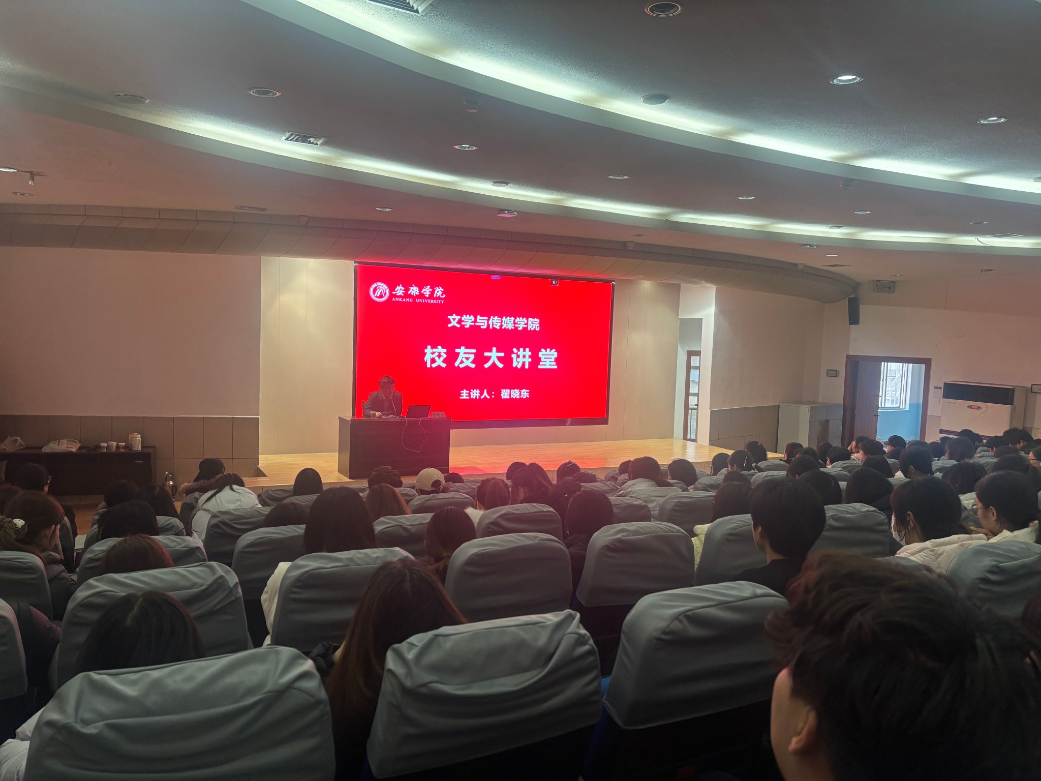 1219日下午,BV伟德官方网站在江南校区一号楼报告厅举办员工大讲堂活动。本次活动特邀陕西安康沁园春文化产业有限公司总经理、BV伟德官方网站员工翟晓东担任主讲,公司党总支副书记侯红艳、学工办主任薛涛及公司部分员工代表参加活动由侯红艳主持。