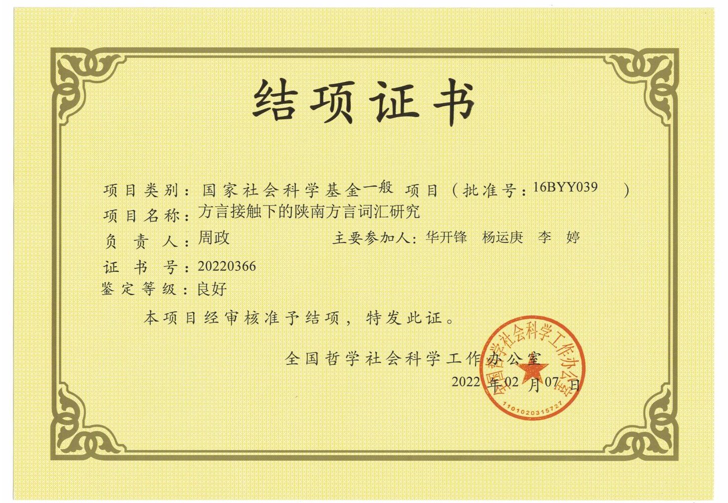 导航痕迹 首页 > 团队队伍 > 教师风采 > 正文 团队概况 教师简介 兼职教授 教师风采 李春平专栏 国家社科基金项目——方言接触下的陕南方言词汇研究顺利结题 来源:BV伟德官方网站 发布日期:2022年06月07日 阅读次数: