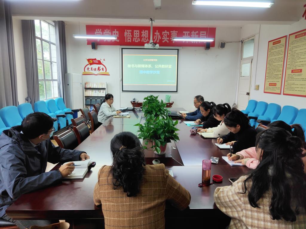 汉语言文学系也于当天组织公开观摩课,全系教师在1205教室观摩了安朝辉老师的《中国古代文学1》课程,并于课后在公司2307会议室进行了教学研讨。