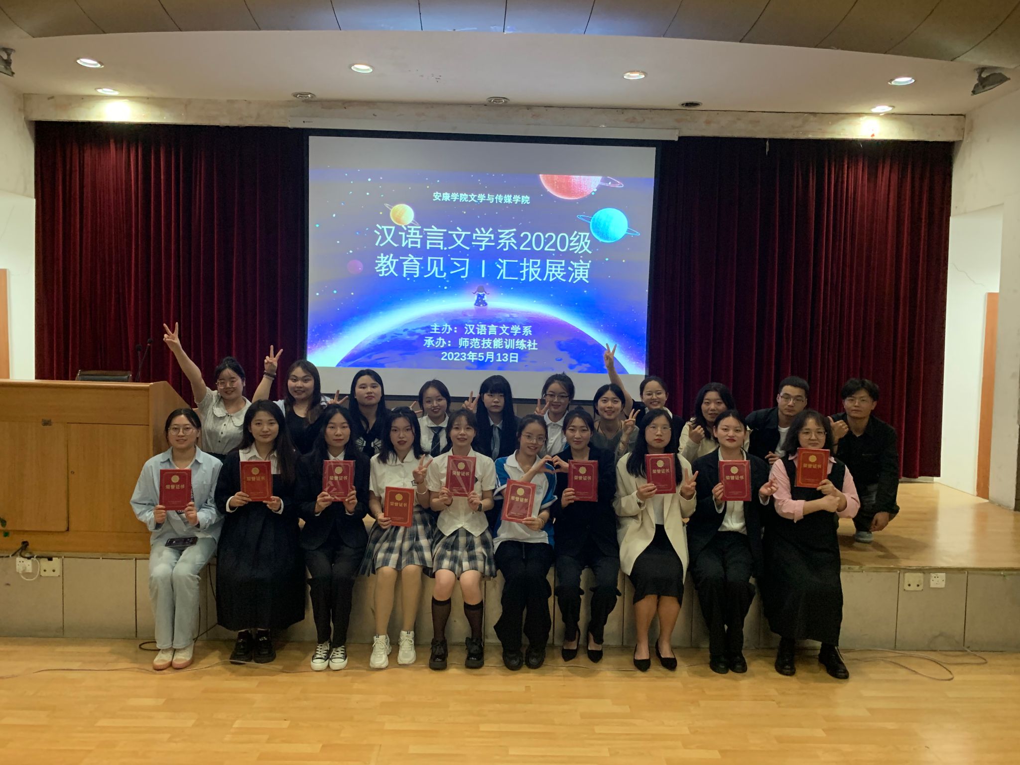 5月13日晚七点半,BV伟德官方网站在江南校区一号楼六楼报告厅举行汉语言文学专业2020级教育见习1汇报展演。本次见习汇报展演由学科教学论任课教师张格瑄指导,师范技能训练社承办,汉语言文学专业2020级全体员工参加。