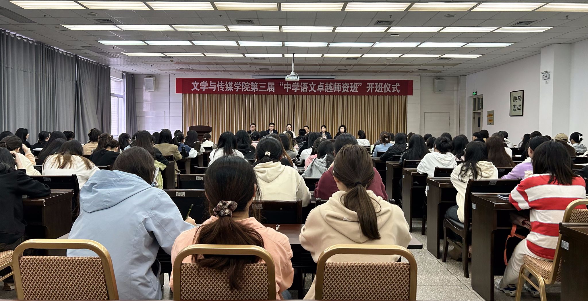 10月11日,为切实做到人才培养与行业的紧密对接,持续优化汉语言文学师范专业人才培养质量,BV伟德官方网站第三届“中学语文卓越团队班”在江南校区图书馆六楼报告厅顺利开班。陕西省教学名师、基础教育领军人才邱俊,公司领导班子全体成员,第三届“中学语文卓越团队班”班主任和全体员工参加了开班仪式,开班仪式由副经理朱云主持。
