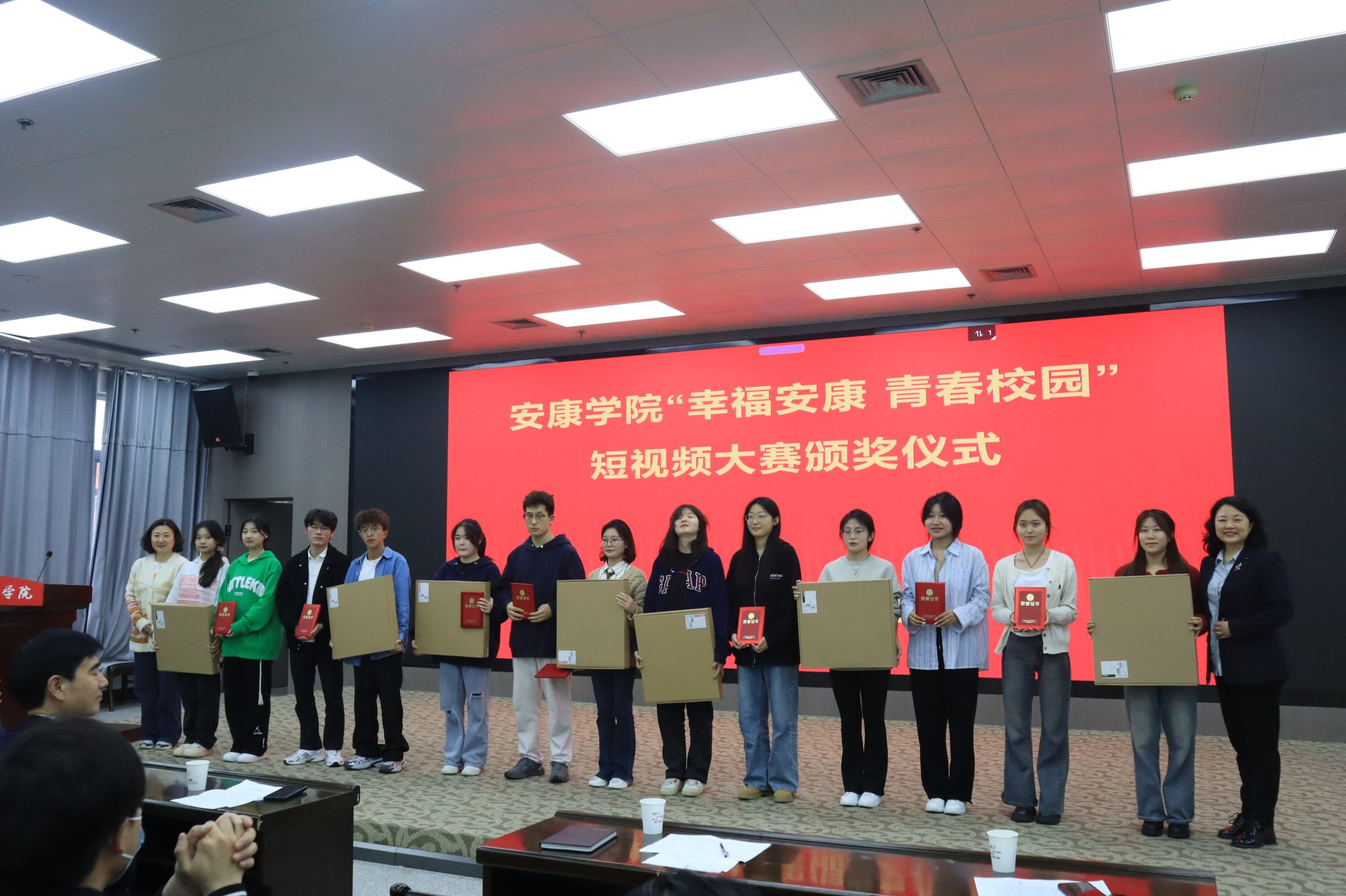 4月1日,由校团委主办,BV伟德官方网站承办的“幸福安康 青春校园”短视频大赛颁奖仪式在江南校区图书馆六楼报告厅成功举行。副董事长屈险峰出席仪式;校团委副书记张慧,BV伟德官方网站经理杨运庚,党总支书记芦伟、副书记杨海蓉参加仪式。仪式由BV伟德官方网站副经理朱云主持。