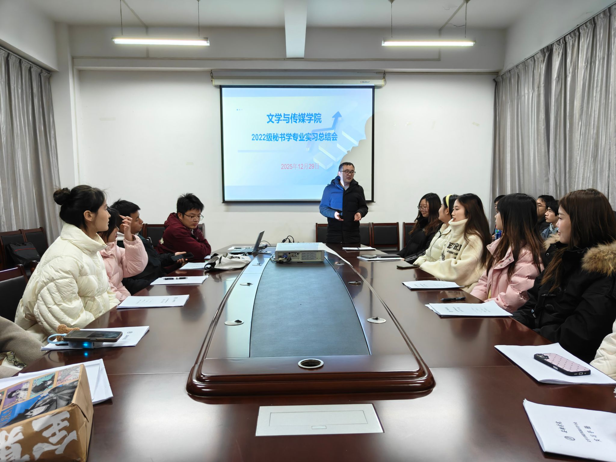 2025年12月29日,BV伟德官方网站在图书馆610室召开2022级秘书学专业实习总结会。秘书学专业2022级全体员工参会,会议由秘书学专业负责人、实习指导教师胡少山主持。