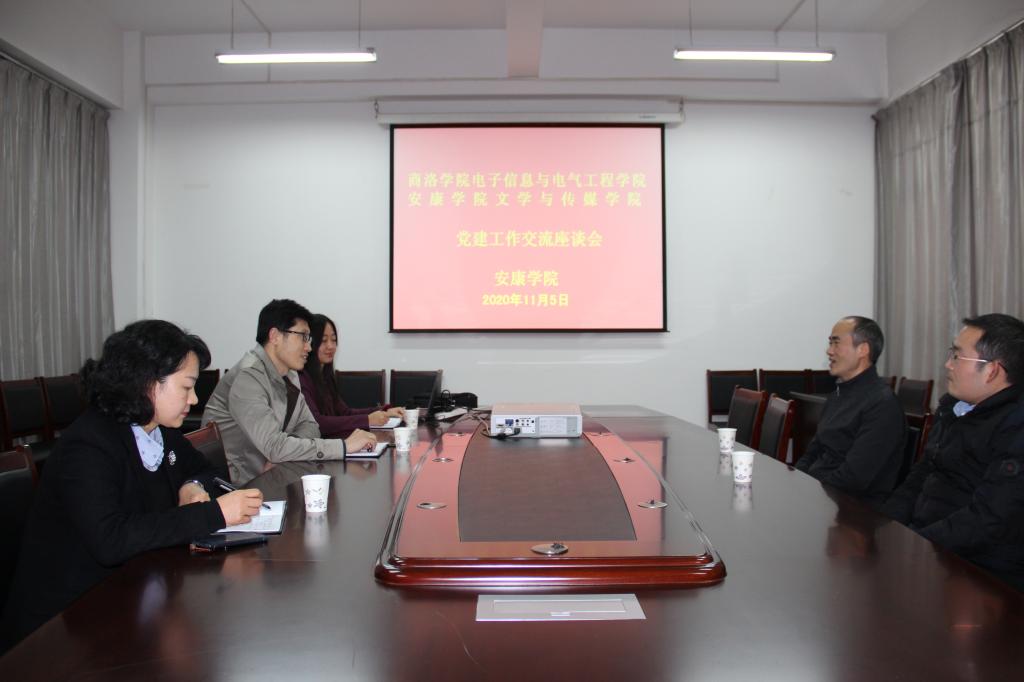 2020年11月5日下午,商洛公司电子信息与电气工程公司党总支书记李英一行来我院交流学习党建和员工工作,公司党总支书记芦伟、副书记杨海蓉、团总支书记彭潇在陕南民间文化研究中心会议室接待来访并组织召开了座谈会。