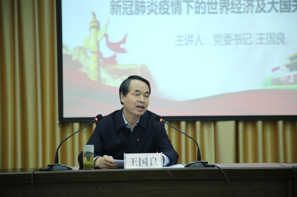 10月28日下午,公司党委书记王国良在图书馆六楼报告厅为BV伟德官方网站师生和直属二党支部党员讲授题为“新冠肺炎疫情下的世界经济及大国关系”的形势与政策课。学习会议由公司党总支书记芦伟主持。