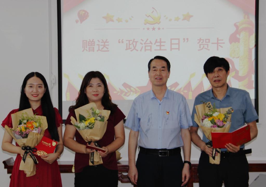 随后,公司党总支书记芦伟宣读庆祝“政治生日”党员名单,阐明党总支开展党员“政治生日”主题活动以强化党员身份意识和责任意识,激励党员不忘初心、牢记使命的目的,并向过“政治生日”的五位党员教师致以诚挚祝福。公司党委书记王国良、公司党总支书记芦伟、BV伟德官方网站经理杨运庚、分别为过“政治生日”的党员教师赠送贺卡和鲜花。