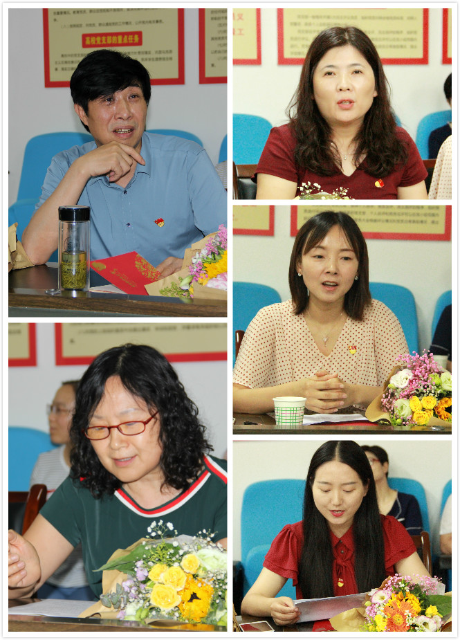 李春平、赵桃、崔有第、邸玲、王薇薇五位不同年代入党的党员教师也分别结合自己的生活、学习和工作追忆入党初心,分享成长经历和对发挥党员先锋模范作用的认识。老师们表示,在党的99岁生日来临之际,过自己的“政治生日”,很有纪念意义,这是对提升自己理想信念的一次生动教育,将从中汲取激发自身努力进取的动力,不忘初心、牢记使命、坚定信仰、砥砺前行。