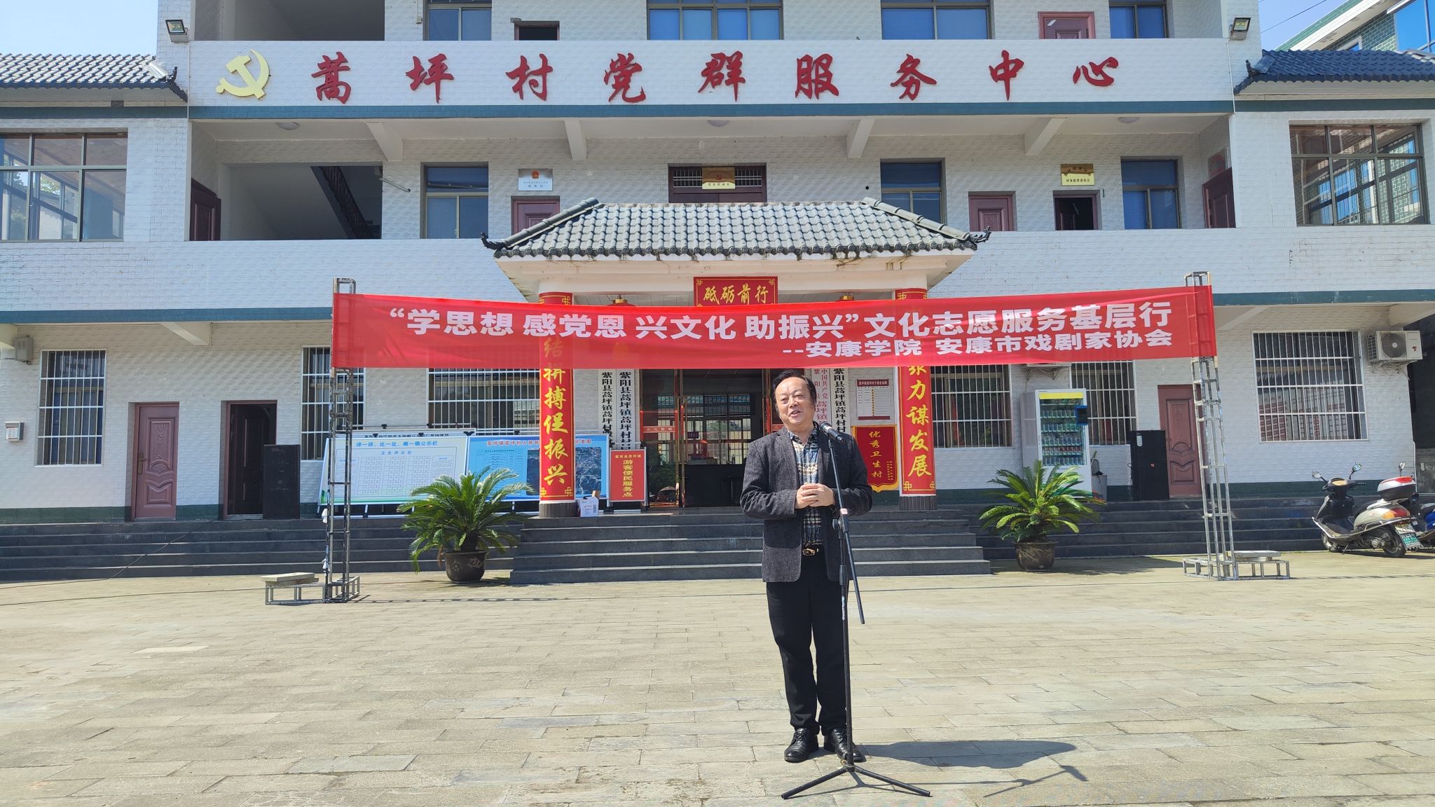 为了积极学习贯彻习近平新时代中国特色社会主义思想和党的二十大精神,推进公司主题教育走深走实,发挥公司“中华经典诵写讲基地”职能,进一步弘扬中华民族优秀传统文化,引导教师党员深入农村“传家风 诵经典 兴文化”,助力乡村文化振兴。5月13日,公司教工第一、第二党支部教师党员和员工文艺演出团队赴紫阳县蒿坪镇蒿坪村开展“学思想 感党恩 兴文化 助振兴”文化志愿服务基层行活动。BV伟德官方网站师生党员、影视戏剧社员工、蒿坪镇政府和蒿坪村领导以及安康市、紫阳县戏剧协会主要负责人等参加了本次活动。