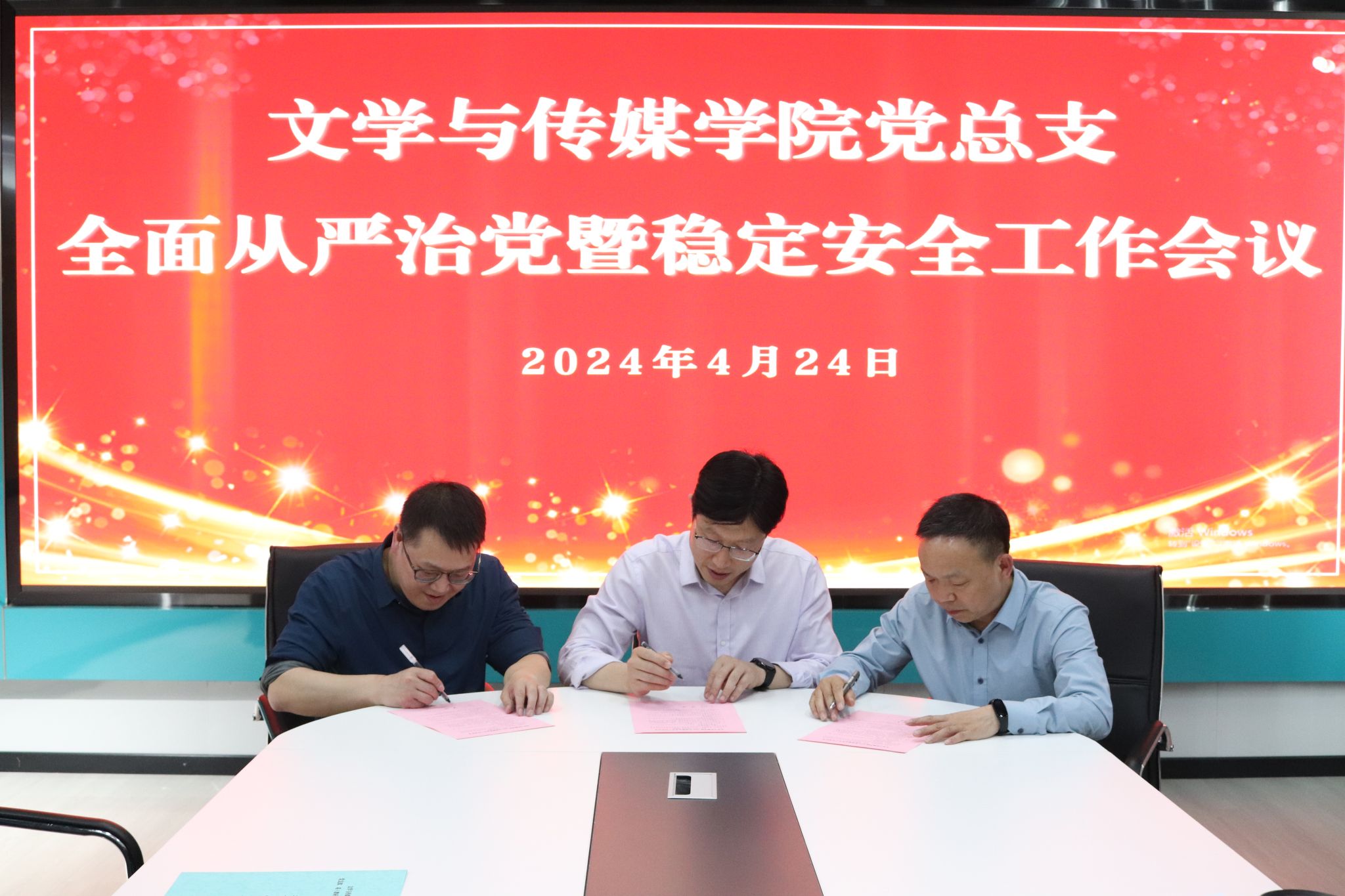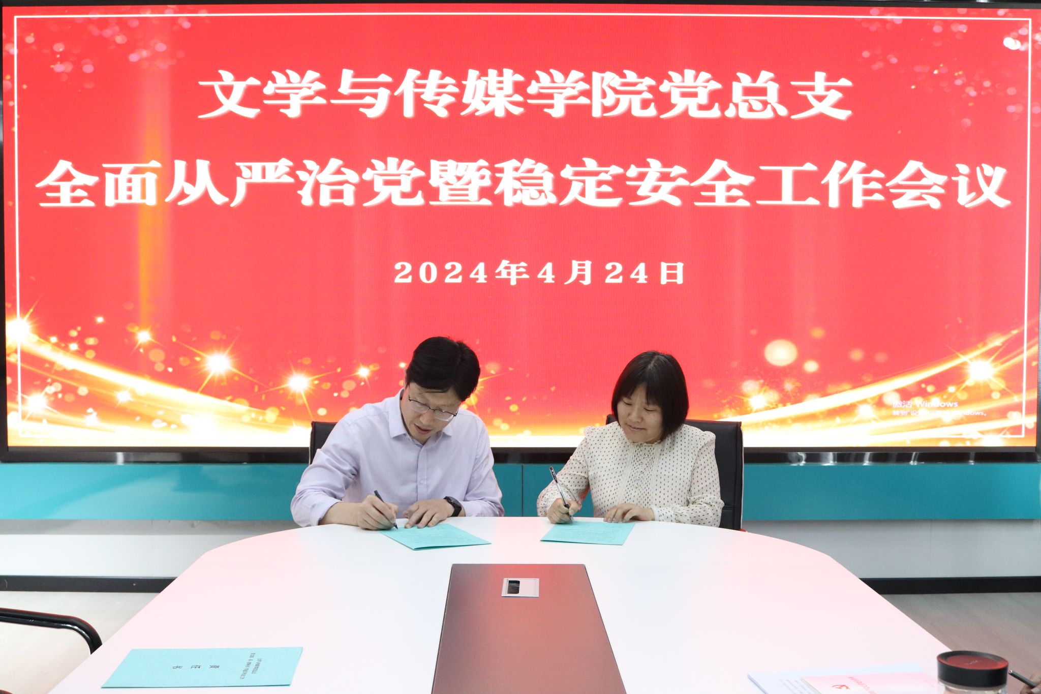 随后,经理杨运庚、党总支书记芦伟分别与领导班子成员签订了全面从严治党、稳定安全工作责任书;芦伟分别与党支部、教师代表签订了全面从严治党、稳定安全责任书和意识形态工作责任书。