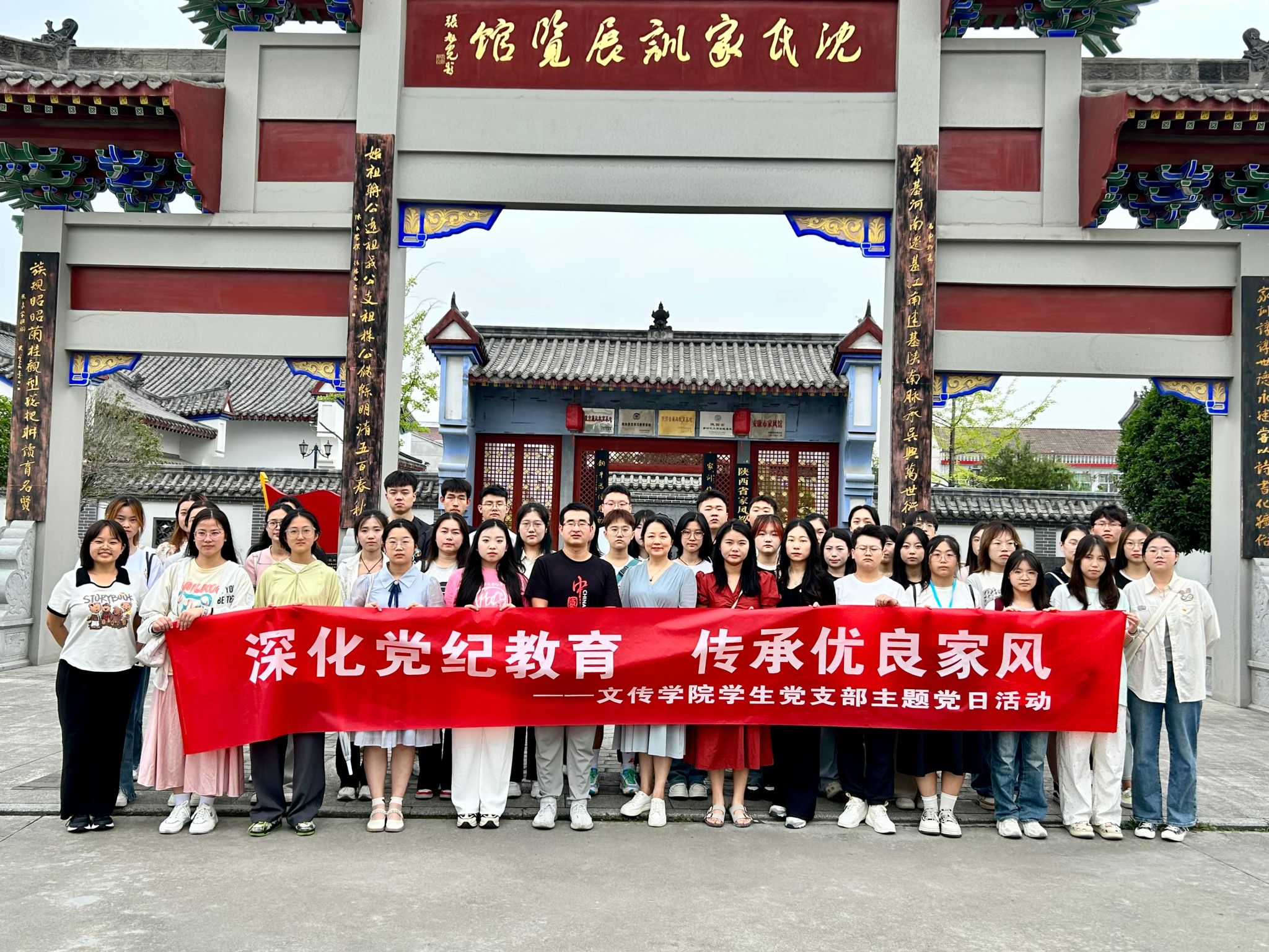 经过近一小时的车程,顺利抵达汉阴县沈氏家训展览馆。在展览馆讲解员的带领下,大家参观学习了沈氏家训展览馆。通过讲解,大家了解了汉阴沈氏的起源、沈氏家训的产生、发展及完善过程,以及家训所蕴含的廉洁文化、家国文化和传统文化的深刻内涵,师生们在研读和交流中深受触动,感受到良好家风对家族传承和社会教育的重大意义。