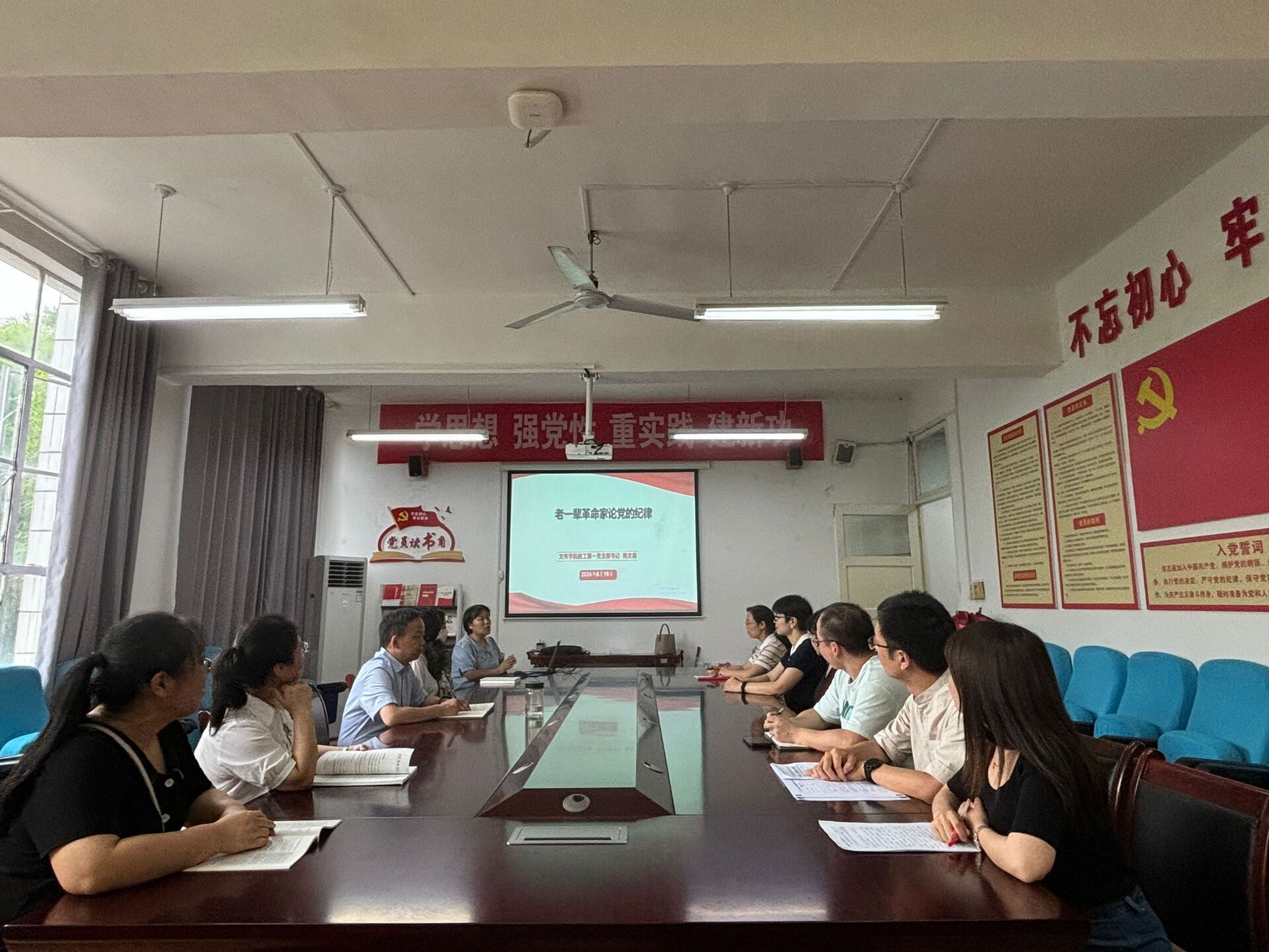 2024年6月19日下午,公司教工第一党支部开展党支部书记讲党课活动,活动主题为“老一辈革命家论党的纪律”,活动在2307室举行,由支部书记韩文霞主讲,支部全体党员参加学习。