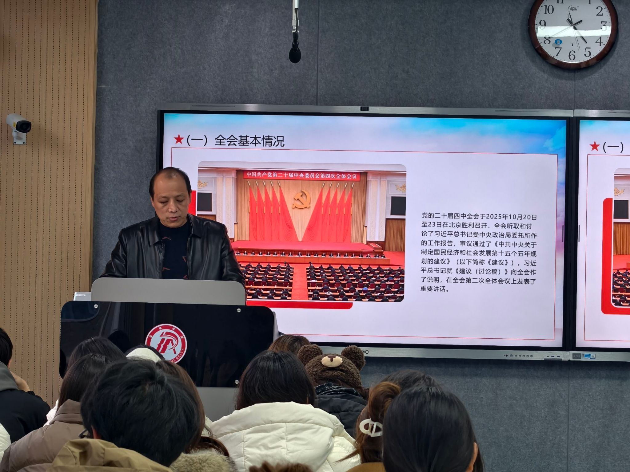 任森龙系统介绍了党的二十届四中全会的重大意义与《中共中央关于制定国民经济和社会发展第十五个五年规划的建议》(以下简称《建议》)的制定背景,带领全体党员回顾了“十四五”时期我国在经济发展、科技突破、深化改革、民生保障、国际交往等方面取得的标志性成就。他指出,这些成就是在党中央坚强领导下取得的,为实现社会主义现代化奠定了更为坚实的物质与制度基础。