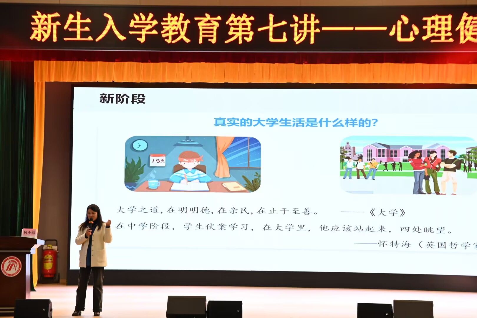 为进一步提升老员工心理健康素质,帮助同学们更好的应对挫折与挑战,11月20日下午,BV伟德官方网站在江南校区大礼堂开展了老员工心理健康教育专题讲座,特邀老员工心理健康教育中心主任柯小敏主讲。2024级全体新生参加活动,讲座由辅导员刘言军主持。