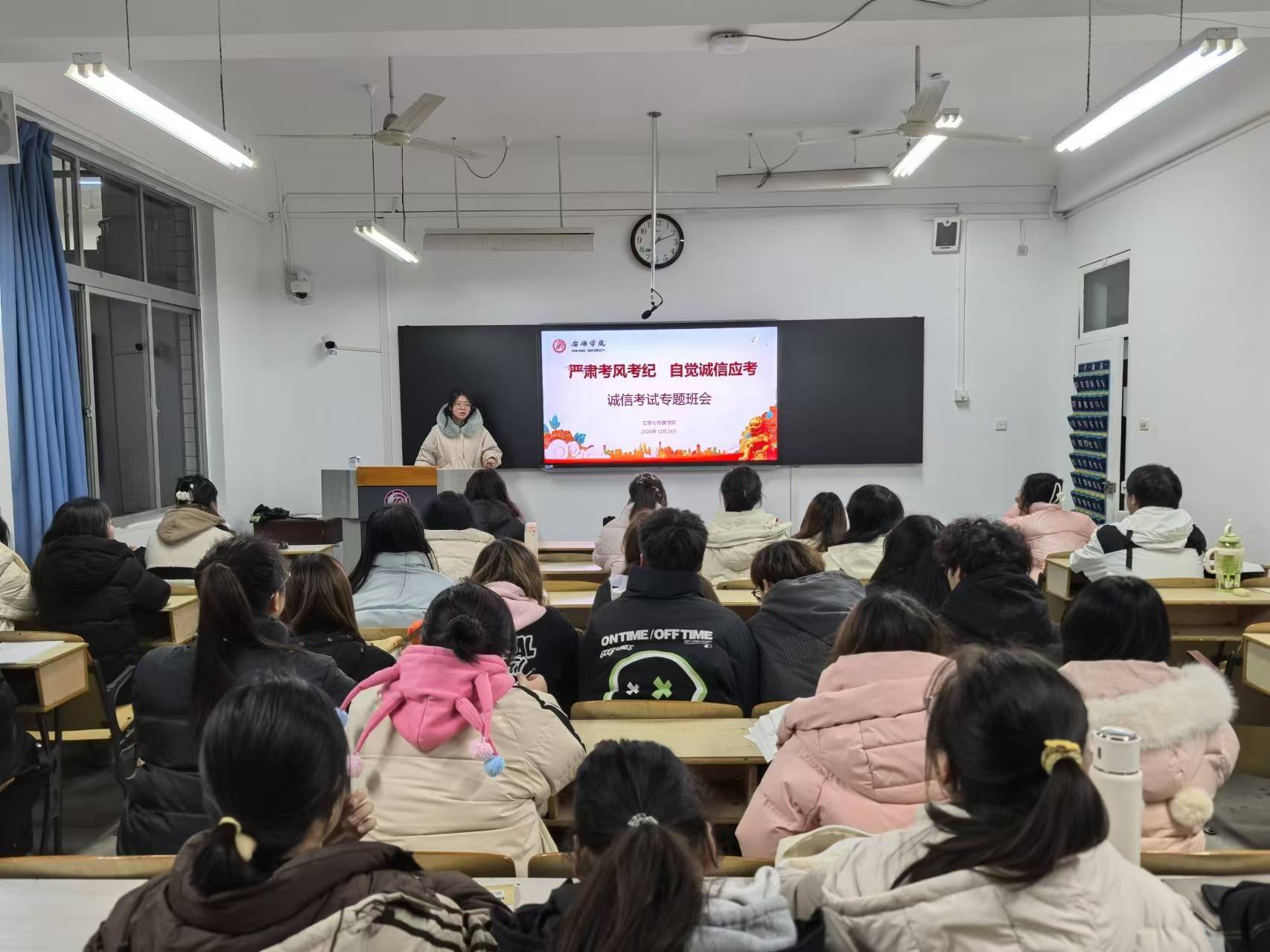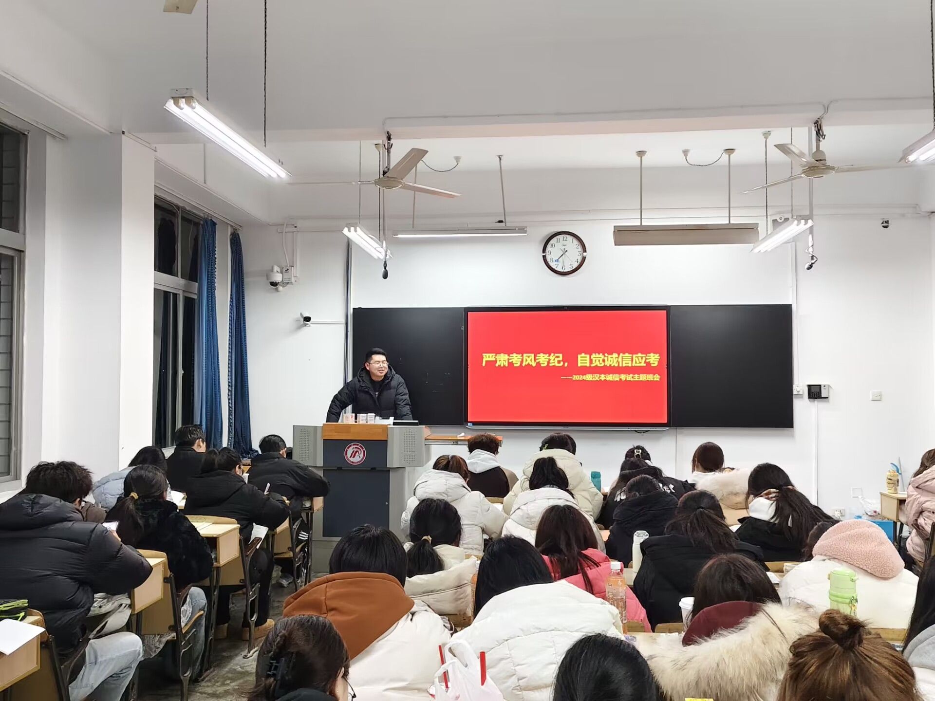 导航痕迹 首页 > 员工工作 > 教育管理 > 正文 教育管理 资助工作 就业工作 学子风采 专业社团 公司开展“强化考风考纪,自觉诚信应考”再教育 发布人: 发布日期:2024年12月26日 阅读次数: 临近期末,为进一步营造良好的考试氛围,弘扬诚信应考的优良学风,BV伟德官方网站再次组织开展了“强化考风考纪,自觉诚信应考”主题教育班会。 各班班会上,辅导员通过多种形式向同学们传达了考风考纪的重要性以及诚信考试的重要意义。结合以往考试中出现的违规违纪案例,让同学们深刻认识到违反考风考纪行为带来的严重后果。同学们纷纷表示,考试不仅是对知识掌握程度的检验,更是对个人品德修养的考量,将以实际行动践行诚信,自觉遵守考试规则,凭借自己的真才实学交出满意的答卷。 此次诚信考试再教育,旨在不断强化同学们的诚信意识,确保在即将到来的期末考试中,全体同学都能以端正的态度、诚实的品质踏实应考,为营造风清气正的考试环境奠定了坚实基础。 撰稿/刘言军 摄影/各班级 审核/杨海蓉 发布/薛涛