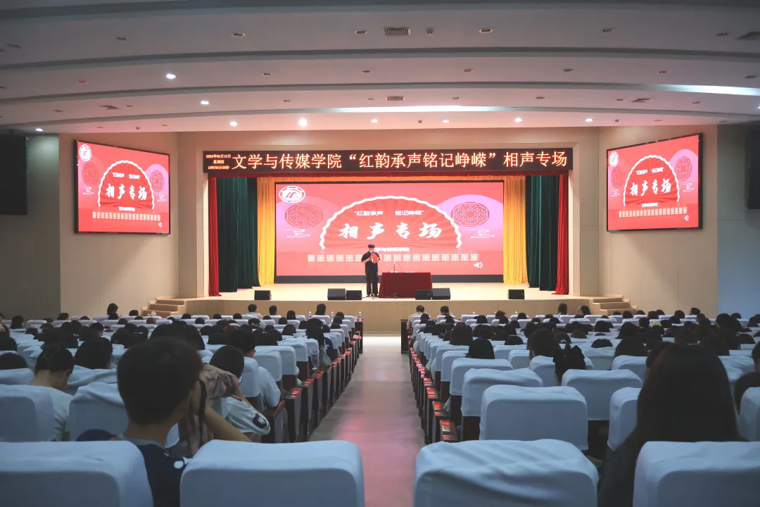 为传承红色基因,切实弘扬中华优秀传统文化,5月15日晚,BV伟德官方网站于大礼堂举办了“红韵承声 铭记峥嵘”相声专场活动,特邀安康市曲艺家协会主席汪涛、校团委书记周云出席,公司党总支书记任森龙,全体辅导员及23、24级全体员工参加活动,活动由汉语言文学2024级1班李炫烨主持。