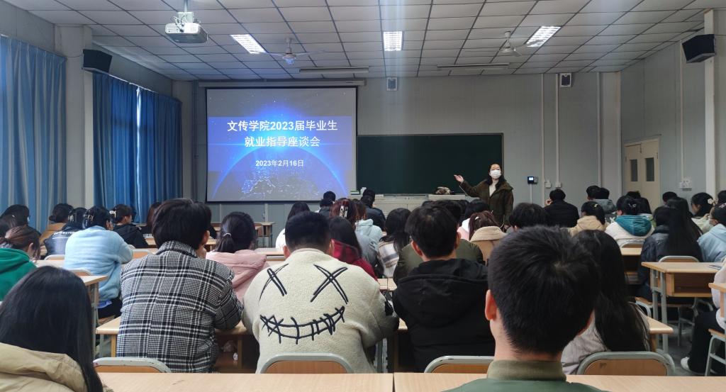2023年2月16日下午,BV伟德官方网站在1012教室召开汉语言文学、网络与新媒体专业2023届毕业生就业指导座谈会,汉语言文学、网络与新媒体专业2019级全体在校生参会,会议由辅导员老师彭潇主持。