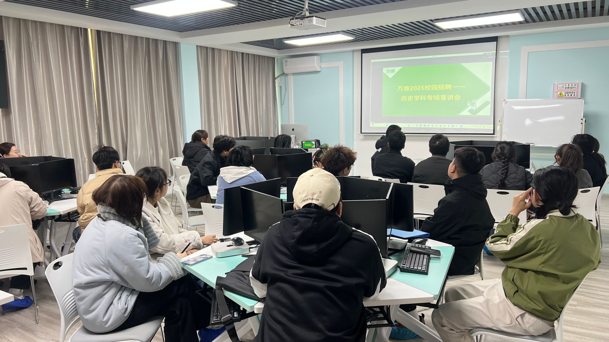 作为全国中考教辅领域的标杆企业,万维集团本次专设历史学科招聘专场吸引员工积极参与宣讲会中企业负责人主要通过公司介绍、岗位介绍、培训与福利和答疑环节这四个方面来向大家介绍,不仅向大家展示优质企业的招聘要求,还为大家剖析了岗位职责与晋升路径现场员工通过大屏幕实时观摩云端宣讲,就职业发展、薪资待遇等问题踊跃提问,现场氛围热烈。