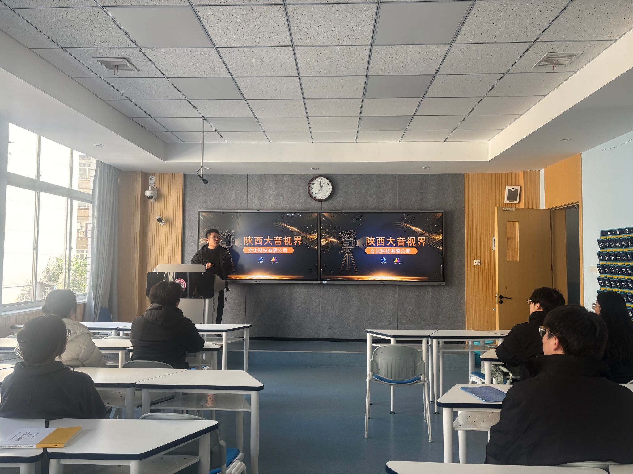 2025年11月21日,陕西大音文化科技有限公司来公司开展2026届毕业生校园招聘宣讲会。公司积极组织2026届毕业班员工参加,宣讲会由公司就业创业办公室主任薛涛主持。