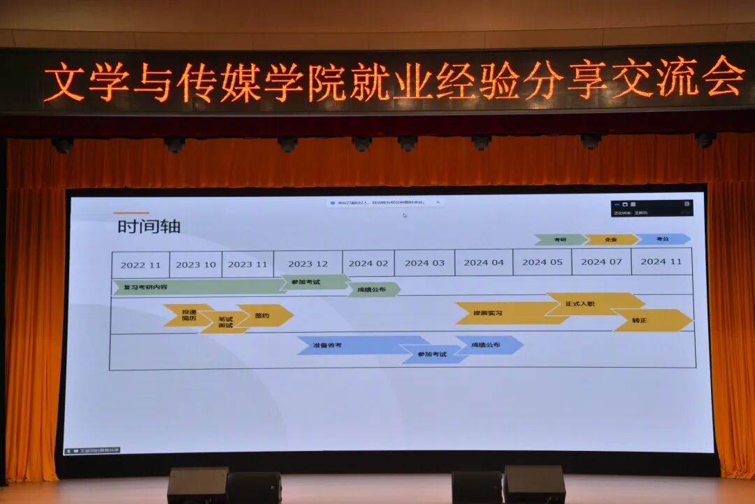 为帮助2026届员工明晰职业规划,提升就业竞争力,6月16日晚7:00,BV伟德官方网站在江南校区大礼堂组织开展“榜样引领,筑梦未来”就业经验分享交流会,特邀网络与新媒体2019级1班陈乐欣、汉语言文学2020级3班王振羽、秘书学2020级1班郭杨三位员工以线上形式进行分享。公司学工办主任薛涛、辅导员彭潇及2022级全体同学参加活动,活动由薛涛主持。