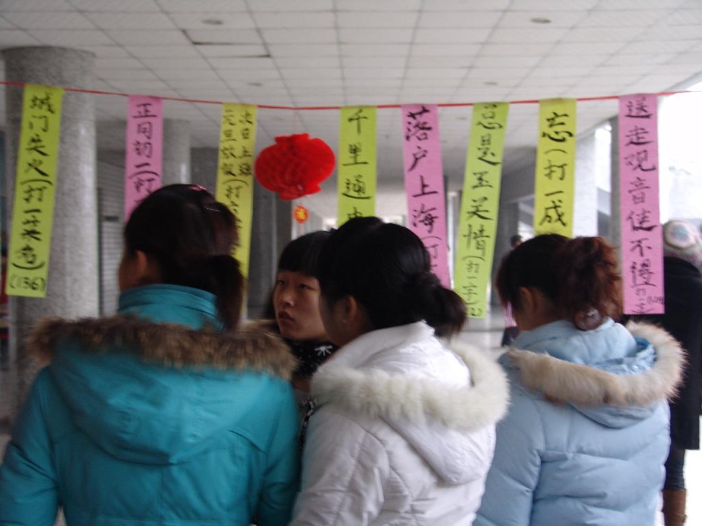 导航痕迹 首页 > 新闻通知 > 公司新闻 > 正文 公司新闻 通知公告 我系成功举办第二届灯谜活动 发布人: 发布日期:2008年12月24日 阅读次数: 由我系08级文秘班主办的第二届“庆元旦、迎新春”灯谜活动于2008年12月18日下午5点在公司一号教学楼大厅成功举办。 在此次灯谜活动中,现场气氛浓烈,同学们激情高涨,纷纷开动脑筋,积极参与活动,不仅丰富了同学们的校园生活,而且促进了同学们之间的交流。此次活动的成功举办,再次展现了08级文秘班团结一心,共同奋进的精神。