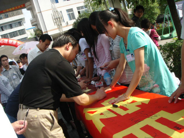 2009年5月25日下午,由中文系主办的BV伟德官方网站第二届老员工心理健康文化节开幕式在公司东校区前操场隆重举行。安康公司党委副书记胡鸿晓、学工部部长郑树青、中文系主任戴承元、中文党总书记沈军、团委任森龙老师、中文系党组织委员邹棠华出席了此次开幕式。党委副书记胡鸿晓宣布心理健康文化节开幕。
