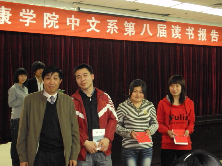 导航痕迹 首页 > 新闻通知 > 公司新闻 > 正文 公司新闻 通知公告 世界读书日献礼 发布人: 发布日期:2010年04月27日 阅读次数: 为迎接第十五个世界读书日,中文系系一年一度的读书报告会于2010年4月22日下午4:00在图书馆六楼报告厅隆重举行。此次大会由BV伟德官方网站中文系主办,公司社团联合会与国学读书社承办。参加此次报告会的有中文系党总支书记沈军、著名作家李春平、 中文系副教授王瑛以及中文系全体辅导员。 经过前两轮的初赛和复赛后,共有八名同学进入本次决赛。八位同学参赛的作品范围广泛,包括战争、爱情、励志等方面;体裁多样,有诗歌、戏剧、小说等。决赛中几位同学分别就个人对《秦腔》、《雷雨》、《巴黎圣母院》、《我的大学》、《击鼓》、《穆斯林的葬礼》、《伪满洲国》、《围城》八部著作中的认识价值、道德伦理价值、教育价值、政治价值、经济价值等方面谈了自己的心得体会。李春平作家和王瑛老师分别对他们的参赛作品一一进行了精彩点评。现场气氛也因此时而活跃,时而严肃,时而安静,时而激动,报告厅中掌声不断。两位评委老师就目前各参赛同学在现有阅读量和人生阅历的背景下对文学文本的精彩解读感到欣慰,同时还特别希望同学们在解读文学作品的时候,要注意既要能走进去也要能跳出来,要试图从作品、读者、艺术和文化等不同的角度去解读文学文本。 08级语文教育(1)班的冯鸣和08级汉语言文学(2)班的冯友芳成绩不相上下。评委老师商议通过现场提问的方式以分伯仲并敲定最终决赛结果:冯鸣获得此次读书报告会的第一名,冯友芳和赵云并列第二,刘庆春、汪菲菲、杨谋德获得第三名,陈昱洁和曲婉蓉获得优秀奖。