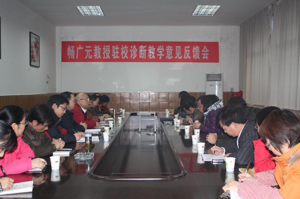 2010年12月13日下午3点至5点,中文系在公司第一会议室召开了“畅广元教授驻校诊断教学意见反馈会”, 中文系全体教师、教务处处长单福东和评建办主任金华锋参加了本次反馈会,反馈会由中文系主任戴承元主持。