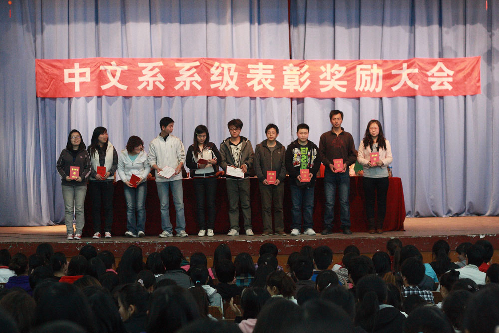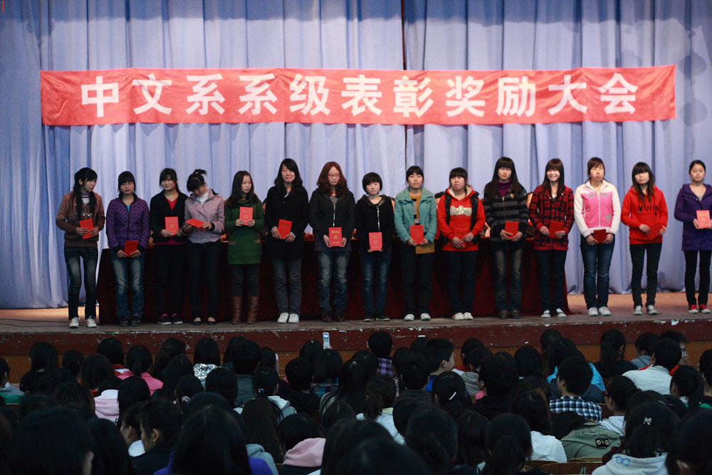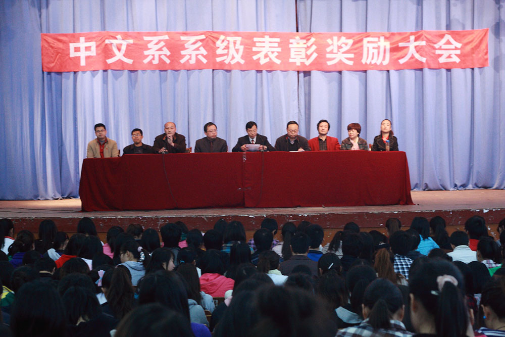 导航痕迹 首页 > 新闻通知 > 公司新闻 > 正文 公司新闻 通知公告 中文系召开2010年度系级表彰奖励大会 发布人:zwx 发布日期:2011年03月18日 阅读次数: 3月17日下午4:20分,中文系在东校区大礼堂召开2010年度系级表彰奖励大会,中文系党总支书记沈军、系主任戴承元、副主任雷升录、梁卫华、学工办主任郝礼军、辅导员邹棠华、艾全霞、何媛、韩晔以及800余名员工参加了表彰奖励大会。大会由学工办主任郝礼军主持。党总支书记沈军总结了我系2010年员工工作,对表现优秀的同学提出了表扬,向取得成绩的同学表示了热烈祝贺,对员工管理人员、系员工干部的辛勤工作表示感谢,也对一年来同学们的健康成长感到由衷的高兴。总结中沈老师还列举了一些同学不合规范、不守纪律、不思学习的现象,对此提出批评,并对工作中的不足提出了整改措施;系主任戴承元宣读《中文系2010年度表彰奖励决定》及受表彰奖励员工名单,希望受表彰的同学引领带头作用,努力学习,锐意进取,为我系的良好系风、学风建设做出贡献。