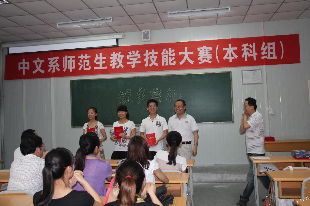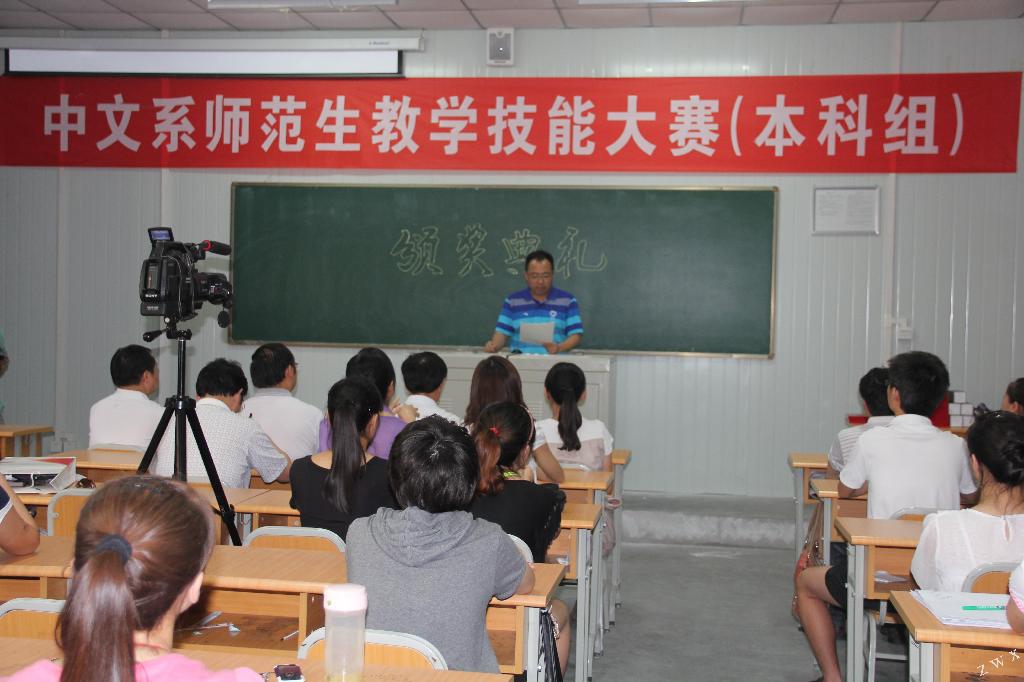 6月14日,中文系第二届师范生教学技能大赛决赛在十号楼1016、1018教室成功举行。来自2009级汉语言文学和2010级语文教育专业的53名同学参加角逐,最终评选出一等奖5名,二等奖10名,三等奖15名,优秀奖33名,同时评出“最佳板书奖”、“最佳才艺奖”等单项奖4名。