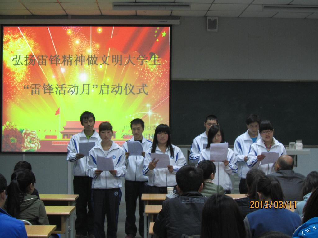 员工代表李青松同学宣读了“弘扬雷锋精神做文明老员工”的倡议书,班级代表进行了“学习雷锋精神”诗歌朗诵,倡议同学们学习雷锋从小事做起。