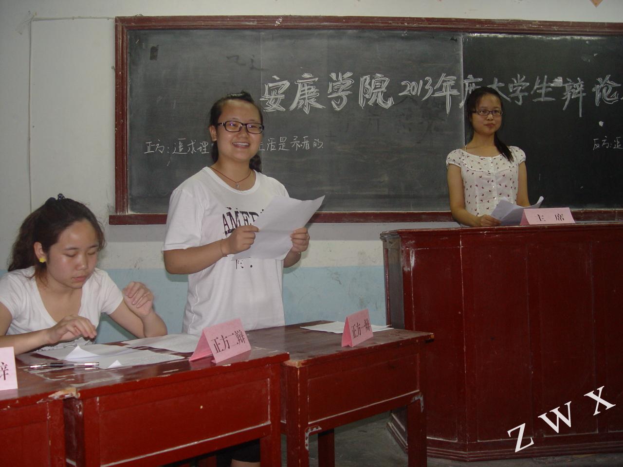 2013年6月20日晚8时,我系 “金雀杯”辩论赛决赛在江南校区2号楼2305教室拉开帷幕。本场决赛的评委由系党总支书记李岩、中文系副主任梁卫华、中文系辅导员艾全霞、中文系副教授杨静及系员工会主席牟童担任。