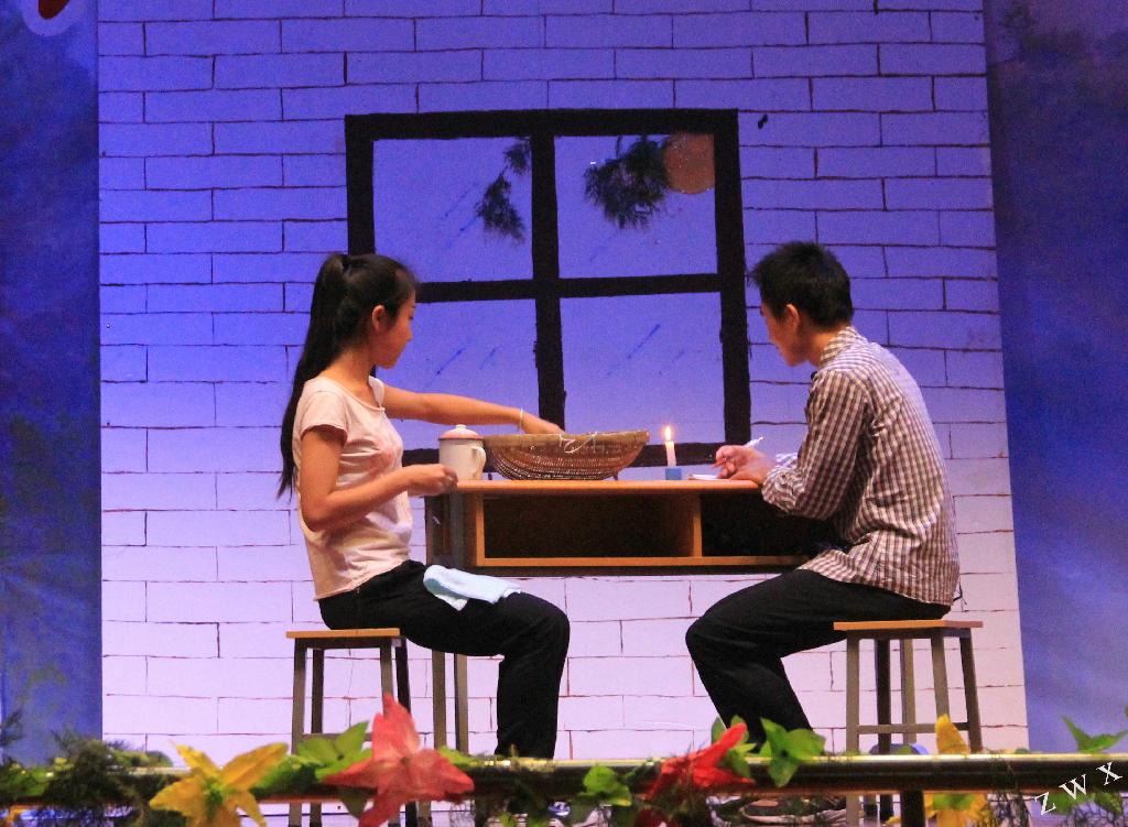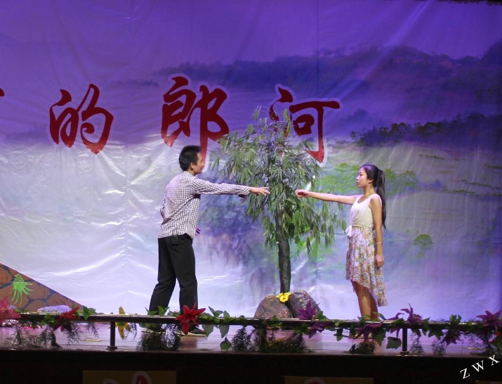 《小芹的郎河》是根据陕西省作协副主席、安康市作协主席张虹的同名小说改编,由BV伟德官方网站中文系教师邹棠华编剧并执导,BV伟德官方网站中文系专业社团——影视戏剧社演出。全剧十一场,演出时间一小时二十分钟。该剧为原创剧目,主创人员为中文系影视戏剧社成员,排练历时三个多月。《小芹的郎河》讲述的是云城公司毕业生苏文因恋人刘翔羽爱上了煤矿老板,毅然选择了去鹞子岭做一名乡村教师。在鹞子岭,他为鹞子岭朴实善良的乡亲所感动,为杨明堂董事长、肖伊霞老师、胡群老师和哑女小芹(董事长女儿)的无私奉献精神所感染,他深深地爱上了这里,也爱怜着这里可怜的孩子们。共同的理想追求,共同的无私奉献,使苏文与哑女小芹产生了新的爱情。当他们的爱情之花嫣然绽放之际,丧偶的刘翔羽来到了鹞子岭,一面捐资修建希望小学,一面希望找回失去已久的爱情。苏文经受住了严峻的感情考验。在一个雷电交加的夏日,当人们正在抢运水泥之际,哑女小芹为抢救落水儿童不慎被泥石流卷走……该剧不仅塑造了无私奉献的山区教师群像,而且反映了农村留守儿童等社会问题,同时对美好爱情进行了讴歌与礼赞,引发人们对“什么是真正的爱情”、“年轻人应该承担怎样的社会责任”等问题的思考。