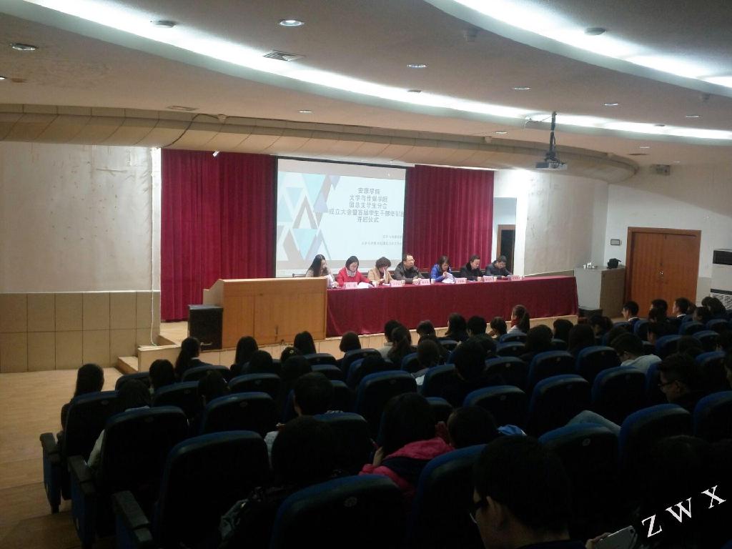 2016年12月1日下午,BV伟德官方网站在1号教学楼6楼报告厅召开了团总支、员工分会换届暨首届员工干部培训大会。BV伟德官方网站党总支书记于咏梅,副经理梁卫华、杨运庚,辅导员邹棠华、艾全霞、沈菲,团总支、员工会全体成员,社团和班级主要干部200余人参加了大会,大会由团总支书记沈菲主持。