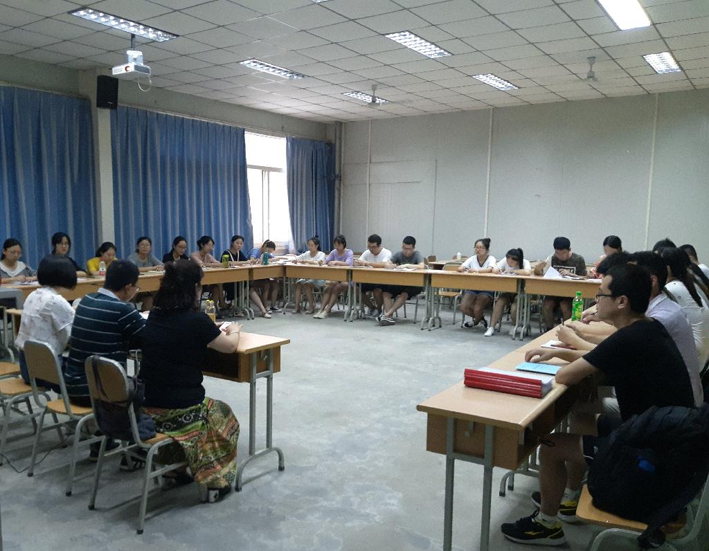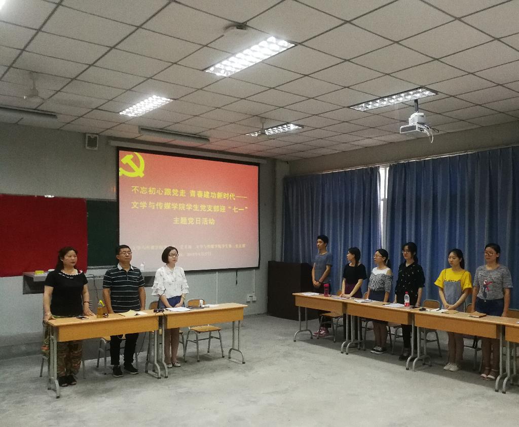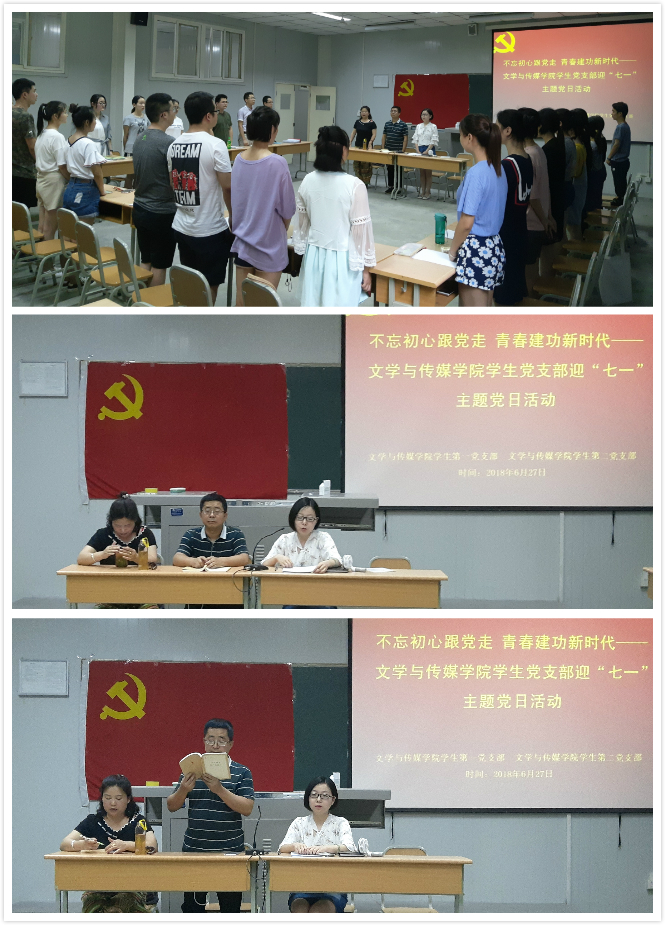 习近平总书记在党的十九大报告上深刻指出中国特色社会主义进入新时代,指出“中国梦是历史的、现实的,也是未来的;是我们这一代的,更是青年一代的。中华民族伟大复兴的中国梦终将在一代代青年的接力奋斗中变为现实”,强调“广大青年要坚定理想信念,志存高远,脚踏实地,勇做时代的弄潮儿,在实现中国梦的生动实践中放飞青春梦想,在为人民利益的不懈奋斗中书写人生华章!”今年是中国共产党建党为97周年,如何引导新时代的广大青年,不忘初心、牢记使命,顽强拼搏、奋勇担当,书写无愧于历史和时代的青春篇章。BV伟德官方网站员工第一党支部、员工第二党支部于2018年6月27日下午在1017教室联合举办 “不忘初心跟党走,青春建功新时代”——迎七一主题党日活动。BV伟德官方网站员工第一党支部书记邹棠华、员工第二党支部书记沈菲、辅导员艾全霞,全体员工党员、入党积极分子参加本次活动。本次活动由沈菲主持。