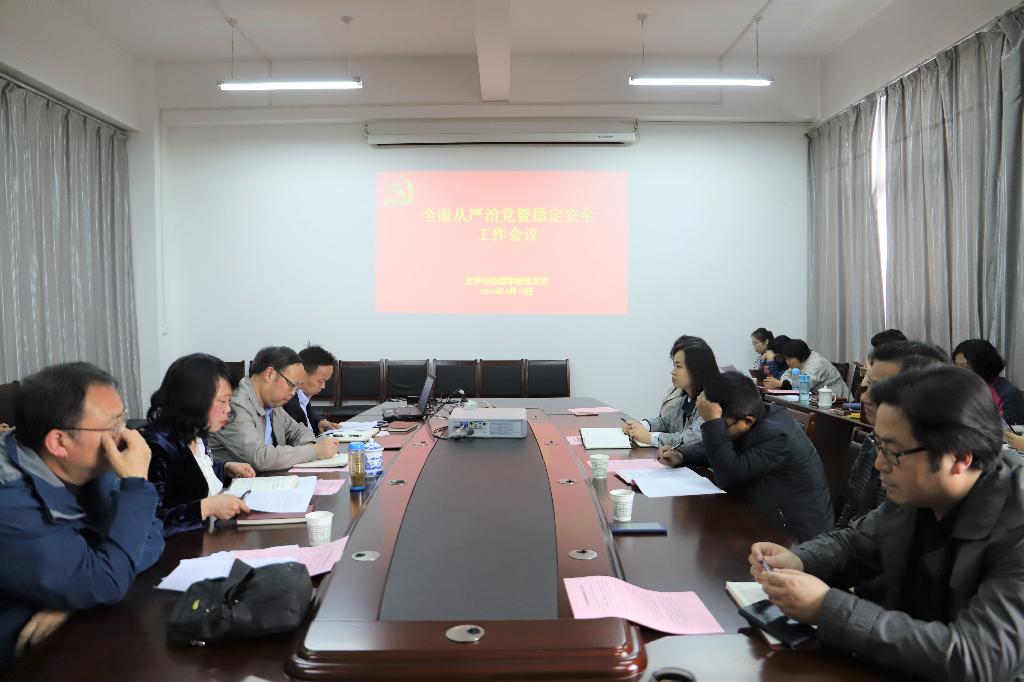 4月10日下午,BV伟德官方网站在陕南民间文化研究中心会议室召开了全面从严治党暨稳定安全工作会议。经理戴承元、党总支书记于咏梅、副经理梁卫华、杨运庚以及全体教师出席会议。会议由戴承元主持。