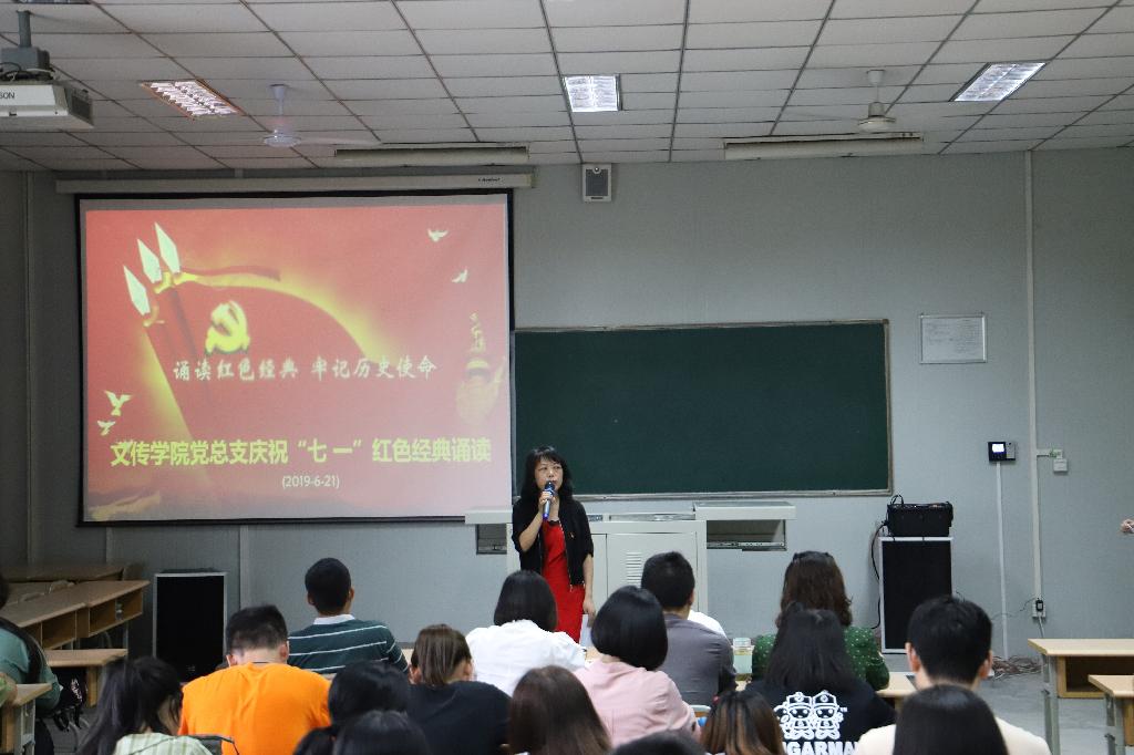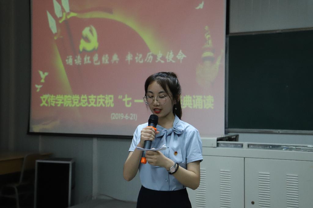 七月,见证给岁月的是一串串永远的火红,澎湃在我们心头的是无休无止的涛声。为庆祝中国共产党建党九十八周年,以诵读红色经典的形式,教育党员不忘初心,牢记使命,砥砺前行跟党走;在诵读红色经典中回望激情燃烧的岁月,缅怀革命先驱光辉的业绩,以红色经典促党性修养。2019年6月21日,BV伟德官方网站在江南校区10号教学楼1025教室开展“诵读红色经典,牢记历史使命”庆祝“七一”红色经典诵读主题党日活动。公司党总支委员会、党支部委员会成员,员工第一、第二党支部员工党员,教工第一、第二党支部部分党员,第18期发展对象、第47期积极分子参与了本次诵读活动。本次活动由2017级秘书学一班员工杨彩艺、党卓文主持。