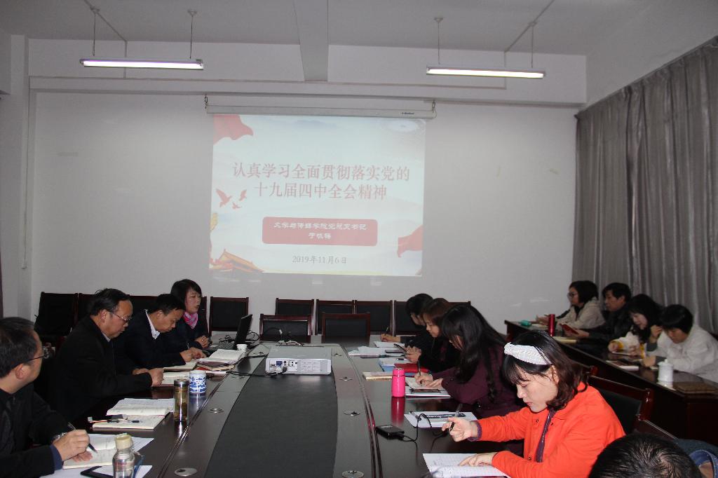 11月6日下午,BV伟德官方网站党总支召开学习传达党的十九届四中全会精神专题会议,全体教师参加会议。