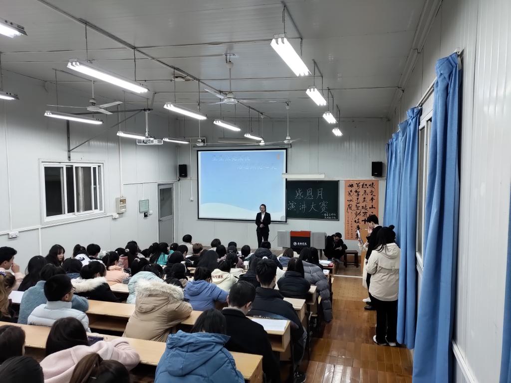 2020年12月11日晚7时,由公司播音主持社、演讲辩论社共同举办的“感恩月”演讲大赛在江南校区6407教室成功举办,此次活动特邀风华诗社韩文霞老师、语言文字社盘珊君老师、BV伟德官方网站王一丹老师和播音主持社指导老师黄治强老师作为评委,演讲辩论社和播音主持社全体社员、集团演讲与播音爱好者参加了此次活动,现场活动氛围热烈。