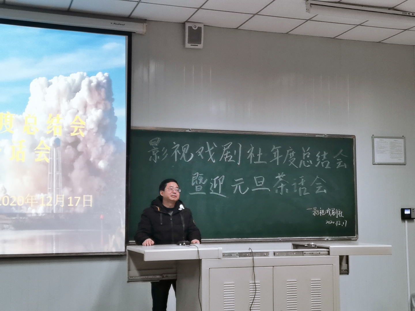 最后,影视戏剧社指导教师邹棠华老师对剧社2021年活动做了规划,2021年上半年会主办一场建党一百周年的大型文艺晚会,下半年全力参与第八届校园艺术文化节展演,并提出在新的一年里尝试制作一些影视方面的作品。他也希望全体同学都能够积极参与表演,能够在社团的活动中一次一次地锻炼自己,共同成长。
