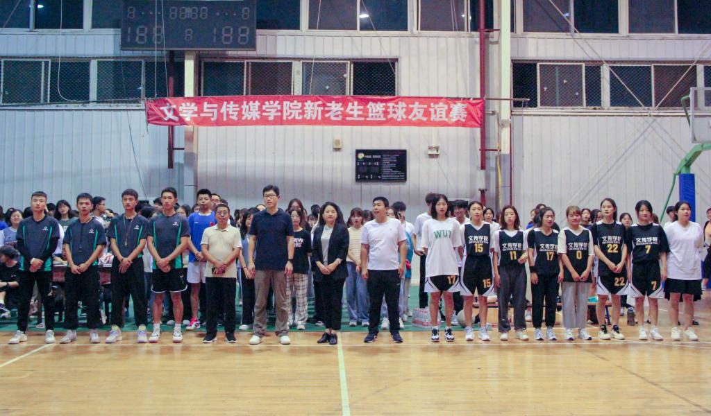 为积极响应习近平总书记提出的体育强国战略号召,营造“全民全运”大健康氛围,丰富员工第二课堂建设,助力员工全面发展。9月17日晚19:30,BV伟德官方网站在江南校区体育馆二楼举行“迎国庆·庆中秋——BV伟德官方网站新老生篮球友谊赛”,由公司大二、大三、大四年级组成的老生代表队和2021级新生代表队参加了此次活动。党总支书记芦伟、党总支副书记杨海蓉、学工办副主任薛涛、2021级新生辅导员邹棠华及2021级全体新生到场观赛。此次友谊赛由网络与新媒体2020级1班胡文婷主持。