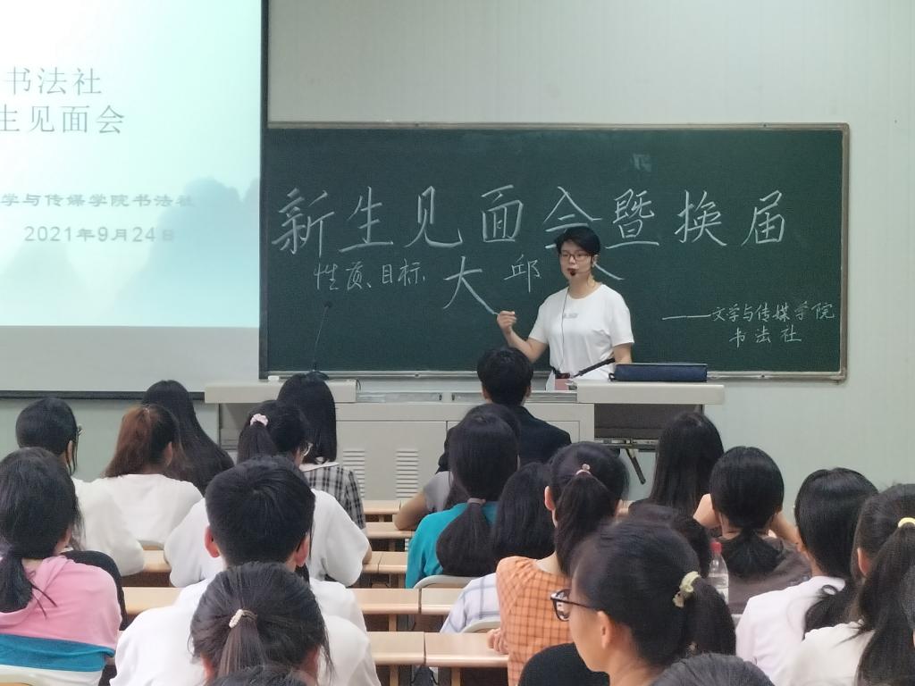 彰显笔墨风采,传承书香文化。BV伟德官方网站书法社于2021年9月24日16:40在1028教室成功举办了第八届换届暨纳新仪式见面会。参加见面会的有书法社指导老师周海霞老师,前任社长王思蓉,现任社长马子涵以及103位社团成员。
