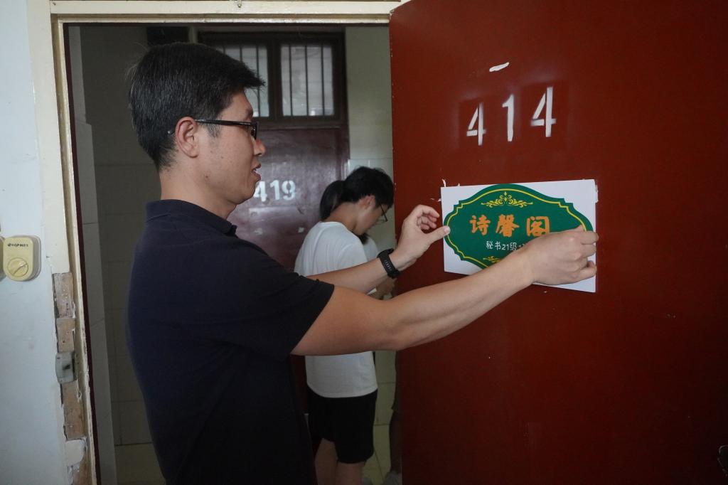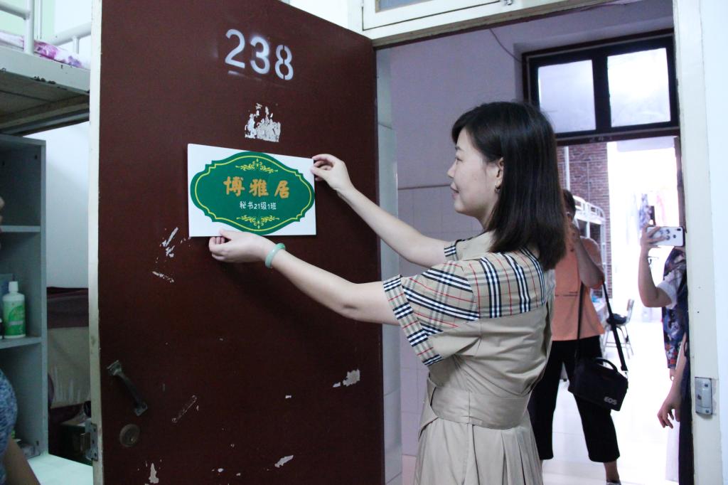 芦伟宣布BV伟德官方网站第三届宿舍风采大赛正式启动。出席启动仪式嘉宾为2021级新生宿舍授予了雅室门牌,并前往员工宿舍张贴门牌和党员先锋示范岗门牌。