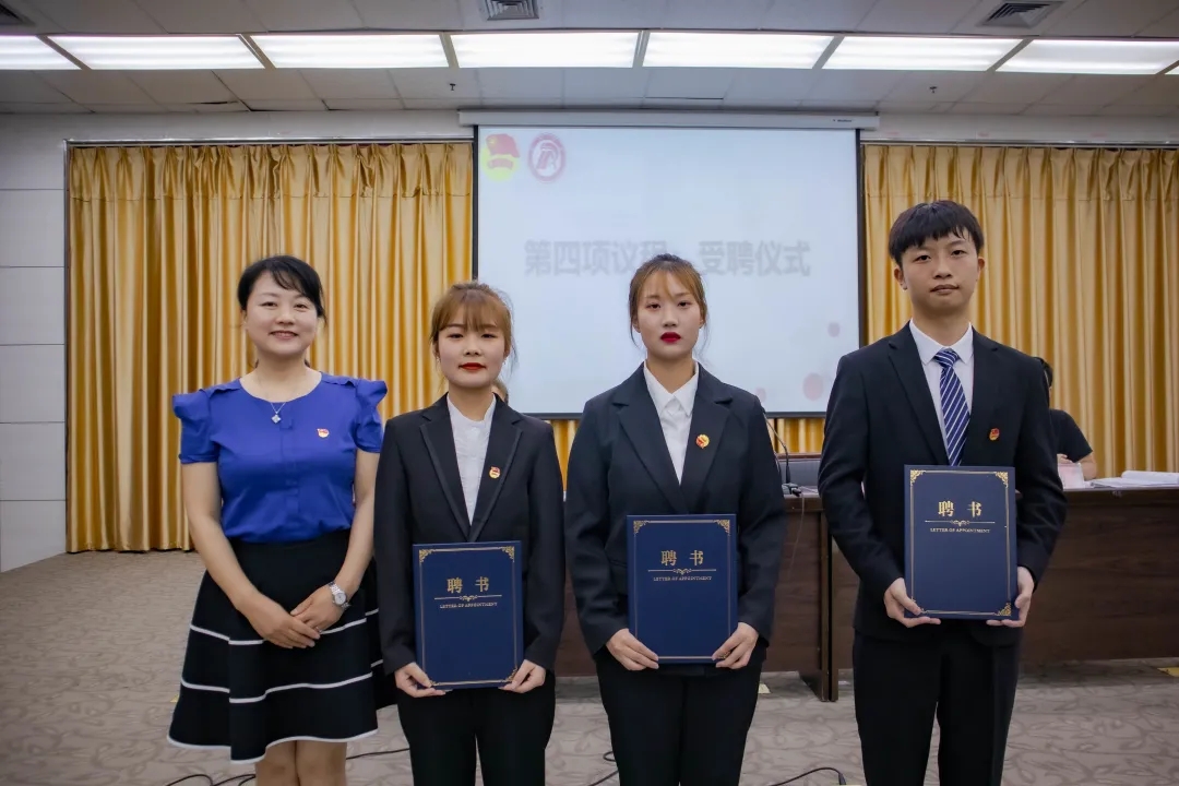 彭潇、杨海蓉分别为新一届团总支副书记苏圆、胡钰梽、新一届员工分会主席团成员范璐、康怡帆、王珂欣颁发了聘书。