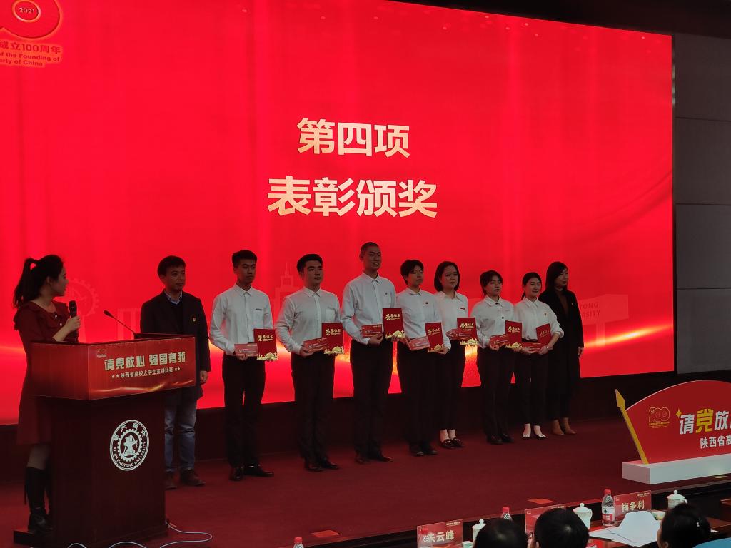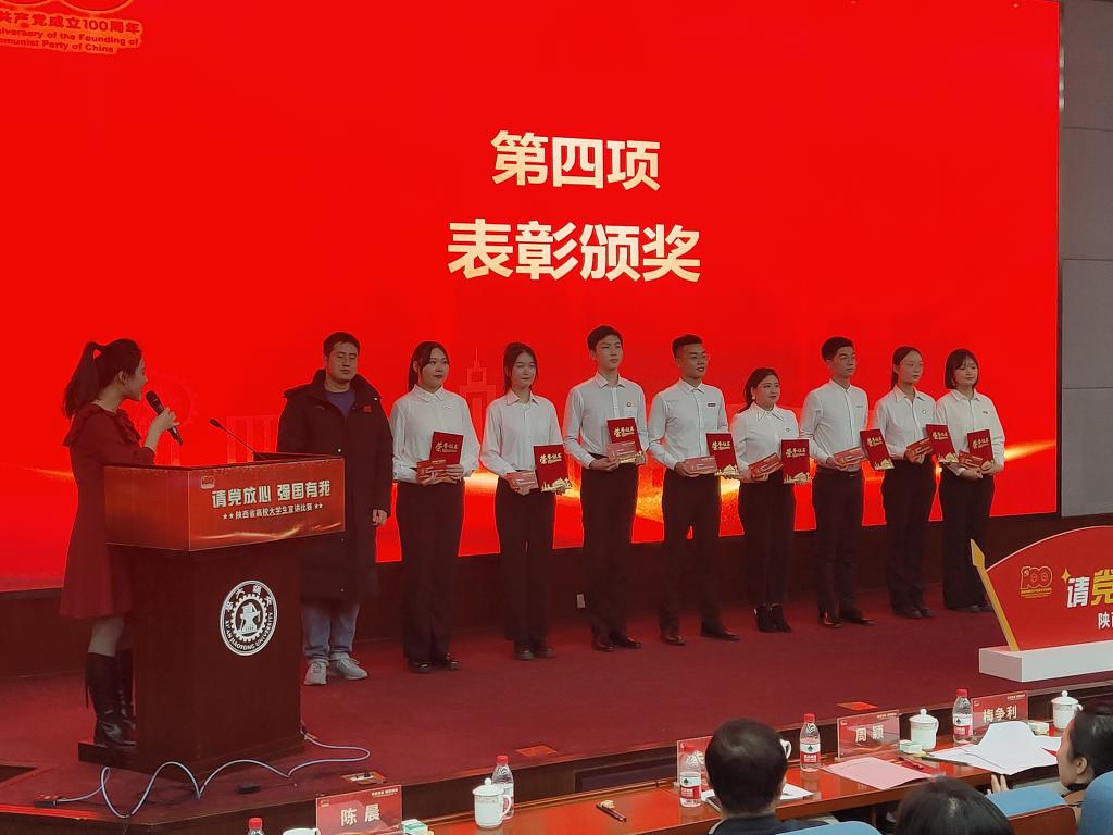 12月2日下午,“请党放心,强国有我”陕西省高校老员工宣讲比赛在西安交通大学兴庆校区隆重举办现场总决赛暨颁奖典礼,公司BV伟德官方网站汉语言文学2019级员工杨钰、秘书学2020级员工郭杨分别获得二等奖。公司党委宣传部部长鲁延安、参赛选手指导教师黄治强出席了颁奖典礼。