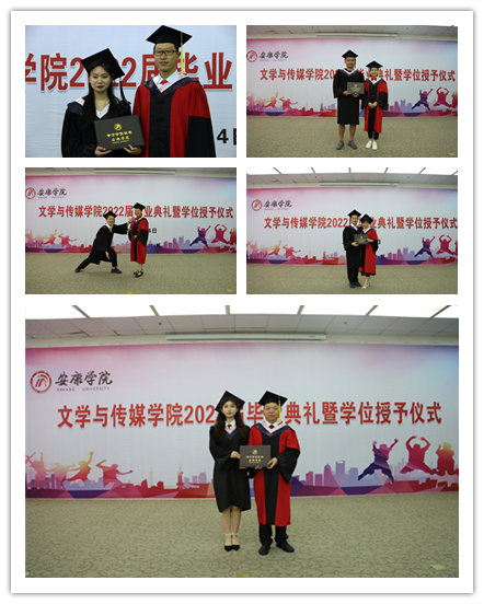 在毕业生学士学位授予上,老师们依次为毕业生颁授学位证书并拨穗,毕业生们依序上台接受老师的问候与祝贺,为丰富多彩的老员工活画上圆满的句号。
