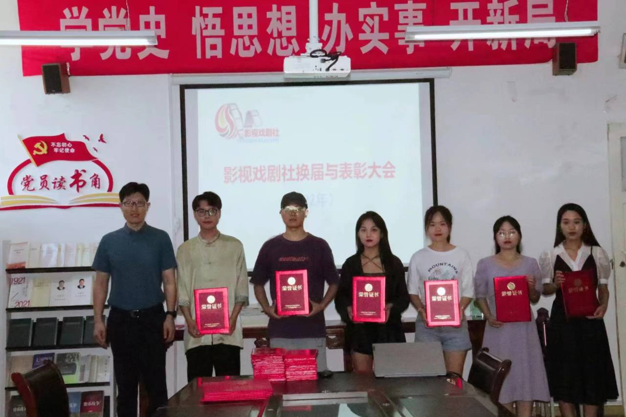 2022年6月24日下午,公司影视戏剧社换届与表彰大会在江南校区2307会议室召开。BV伟德官方网站党总支书记芦伟、副书记杨海蓉、影视戏剧社指导老师邹棠华以及影视戏剧社成员近三十人出席了会议。会议由影视戏剧社常务副社长桑雪同学主持。