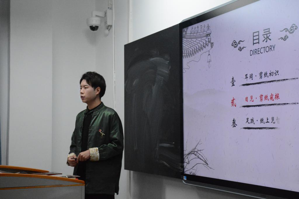 为深入落实学习党的二十大精神,增强新生对对传统文化的认知,树立文化自信,10月31日晚,BV伟德官方网站在1216教室举办了“筑牢文化自信,传扬中华文明——2022级新生剪纸文化互动讲座”,讲座由西安市非物质文化遗产保护协会会员、BV伟德官方网站秘书学2019级梁少华主讲。