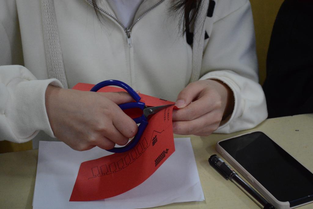 梁少华分别从剪纸的意象、表象和形象三个方面作了阐述,参与讲座的新生也在一幅幅精美的作品中加深了对剪纸的认知。在互动体验环节,同学们都积极地拿起剪刀,尝试剪出自己的剪纸首作,同学们相互交流并顺利完成各自的作品,一幅幅展示的作品带着喜悦将现场气氛推向高潮。