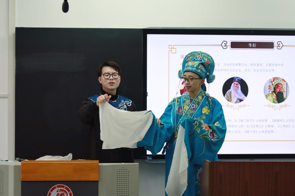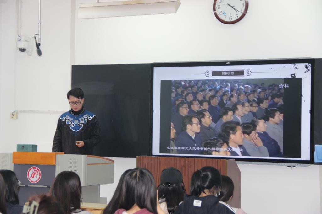 活动尾声,梁少华用视频揭秘秦腔化妆及后台,在全体同学沉浸的欣赏唱段中结束了整节课堂的内容。秦腔作为地方文化的重要组成部分,它的传承具有重要的意义。两期“筑牢文化自信,弘扬爱国情怀”非遗课堂的开展,是爱国主义教育的生动方式,为青年走近非遗打开一扇大门,引导“学非遗、用非遗、秀非遗”在校园生根发芽,以沉浸式体验把非遗文化的种子播撒在学子心中。