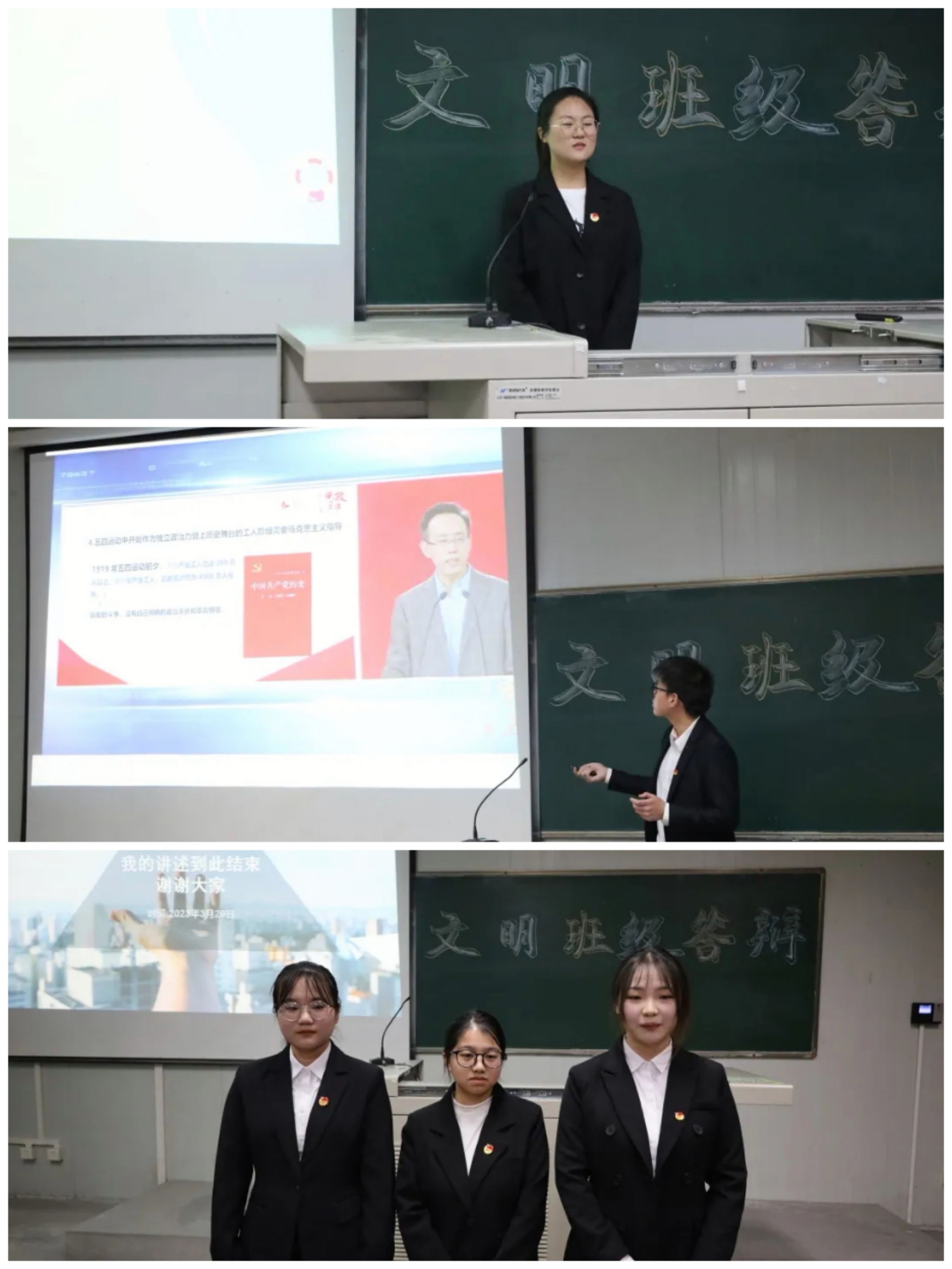各班级代表通过PPT和现场陈述的方式,生动展示了班级在组织建设、思想政治教育、学风建设、班级管理、班级文化建设、班级特色文体活动等方面取得的成绩,各具特色,亮点频出,呈现出团结向上、开拓进取、求实创新的班级风貌。答辩环节,各级各班代表思路清晰,表达流畅,展现了当代老员工良好的青春风采,也获得了评委老师的一致好评。